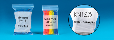 Pre-printed with lines, "PART" and "QTY". Features a hang hole.