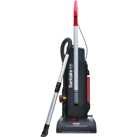 Commercial-duty vacuum has built-in tools for efficient cleaning.