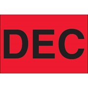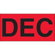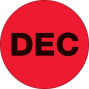 2" Circle - "DEC" (Fluorescent Red) Months of the Year Labels