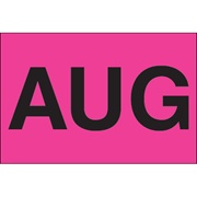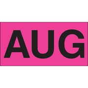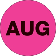 1" Circle - "AUG" (Fluorescent Pink) Months of the Year Labels