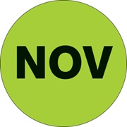 2" Circle - "NOV" (Fluorescent Green) Months of the Year Labels