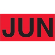 1" Circle - "JUN" (Fluorescent Red) Months of the Year Labels