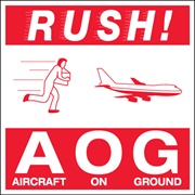 4 x 4" - "Rush AOG - Aircraft On Ground" Labels
